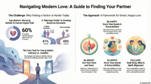 Current marriage patterns, correlations between education level and marriage, and divorce patterns among emerging adults affirm how targeted information and guidance about intimate relationships during our twenties is essential to our long-term success. Census data shows dramatic changes in societal patterns, with people marrying later, fewer younger adults getting married, and more emerging adults living with an unmarried partner.