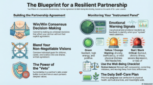 Successful partnerships operate on consensus (win/win) decision-making, so once you’ve committed to each other, neither of you should make a unilateral decision that affects your partner without their agreement. Depending upon your life experience, it’s quite a leap of faith to surrender to your partner’s veto power, as it was for me.